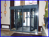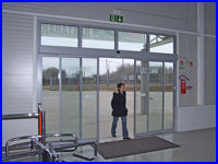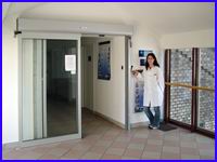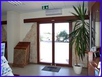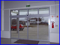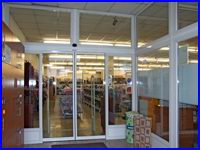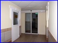 2db toló automata ajtó és komplett szélfogó, üvegezett portálszerkezettel