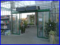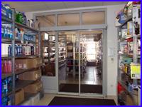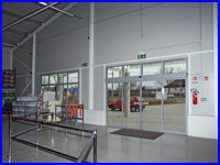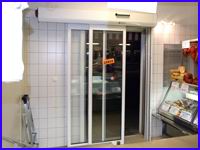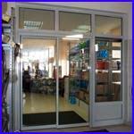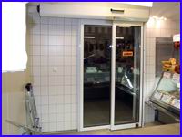 6000 Kecskemét, Halasi út 27. 2db kirakati üvegportál és egy DITEC automata ajtó hőszigetelt, edzett biztonsági üvegezéssel, valamint egy feltekeredő ipari gyorskapu .