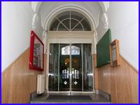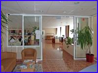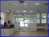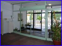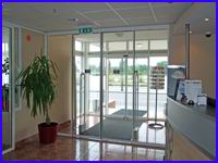 Komplett üvegportál és egy DITEC automata ajtó ragasztott biztonsági üvegezéssel.